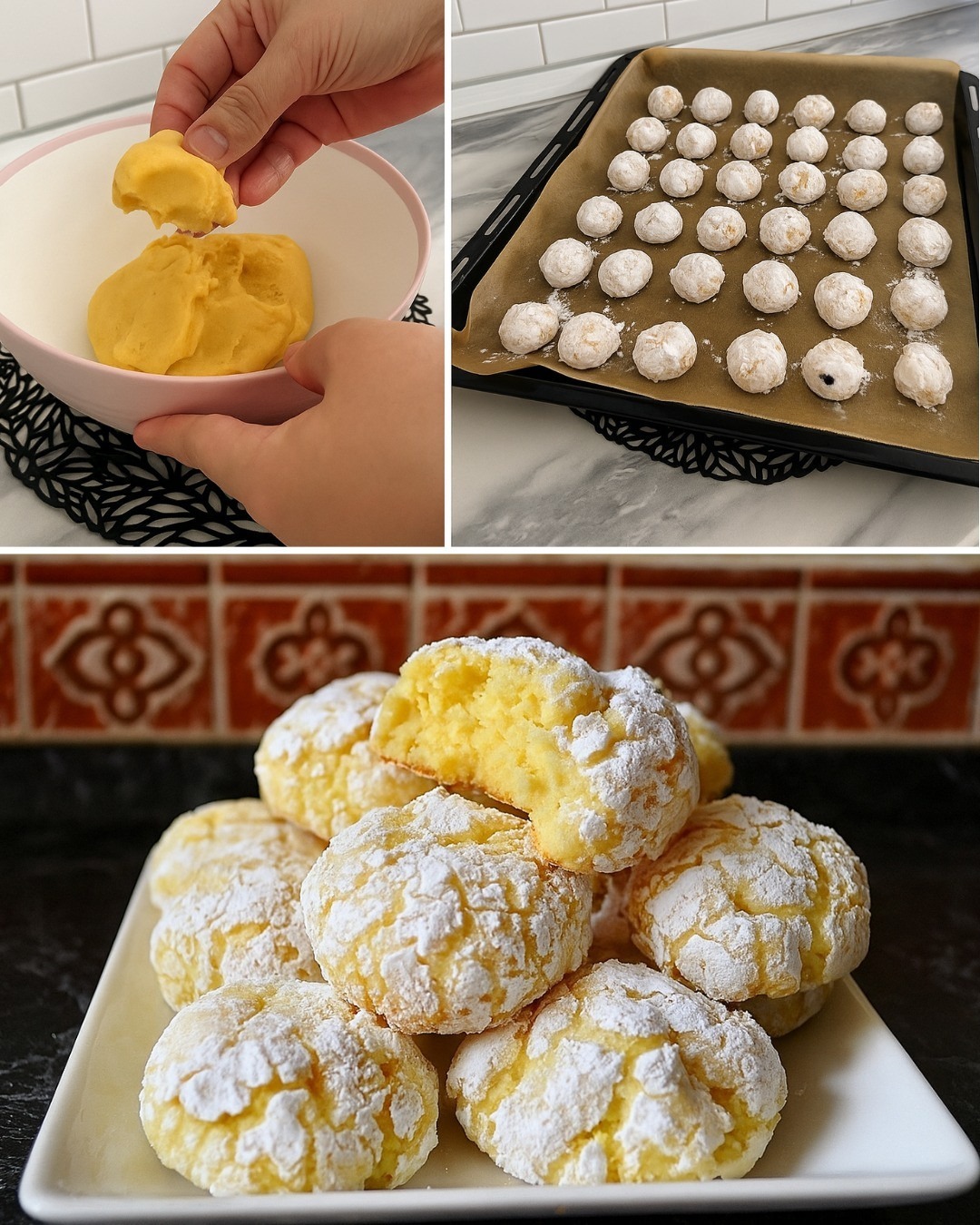 I biscotti al limone cracking sono profumatissimi, morbidi dentro e con la tipica superficie “spaccata” che li rende irresistibili anche alla vista. Perfetti per accompagnare tè o caffè, si preparano facilmente e conquistano al primo morso.