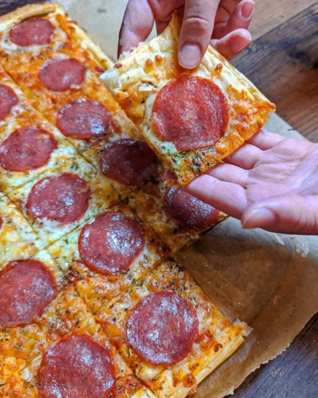 Hai voglia di pizza ma poco tempo per cucinare? Questa pizza ultra croccante con base di pasta sfoglia, salame saporito e formaggio filante è la soluzione perfetta! Pronta in meno di 30 minuti e irresistibilmente gustosa.