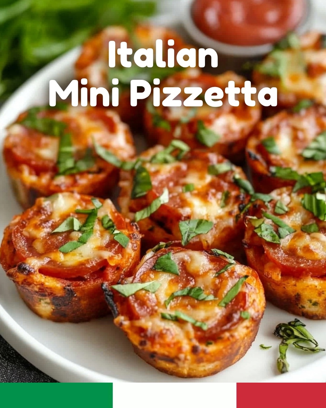 Le Mini Pizzette sono versioni in miniatura della pizza tradizionale. Queste deliziose e croccanti pizze italiane sono preparate con impasto fatto in casa e guarnite con condimenti classici come salsa di pomodoro, mozzarella e basilico.